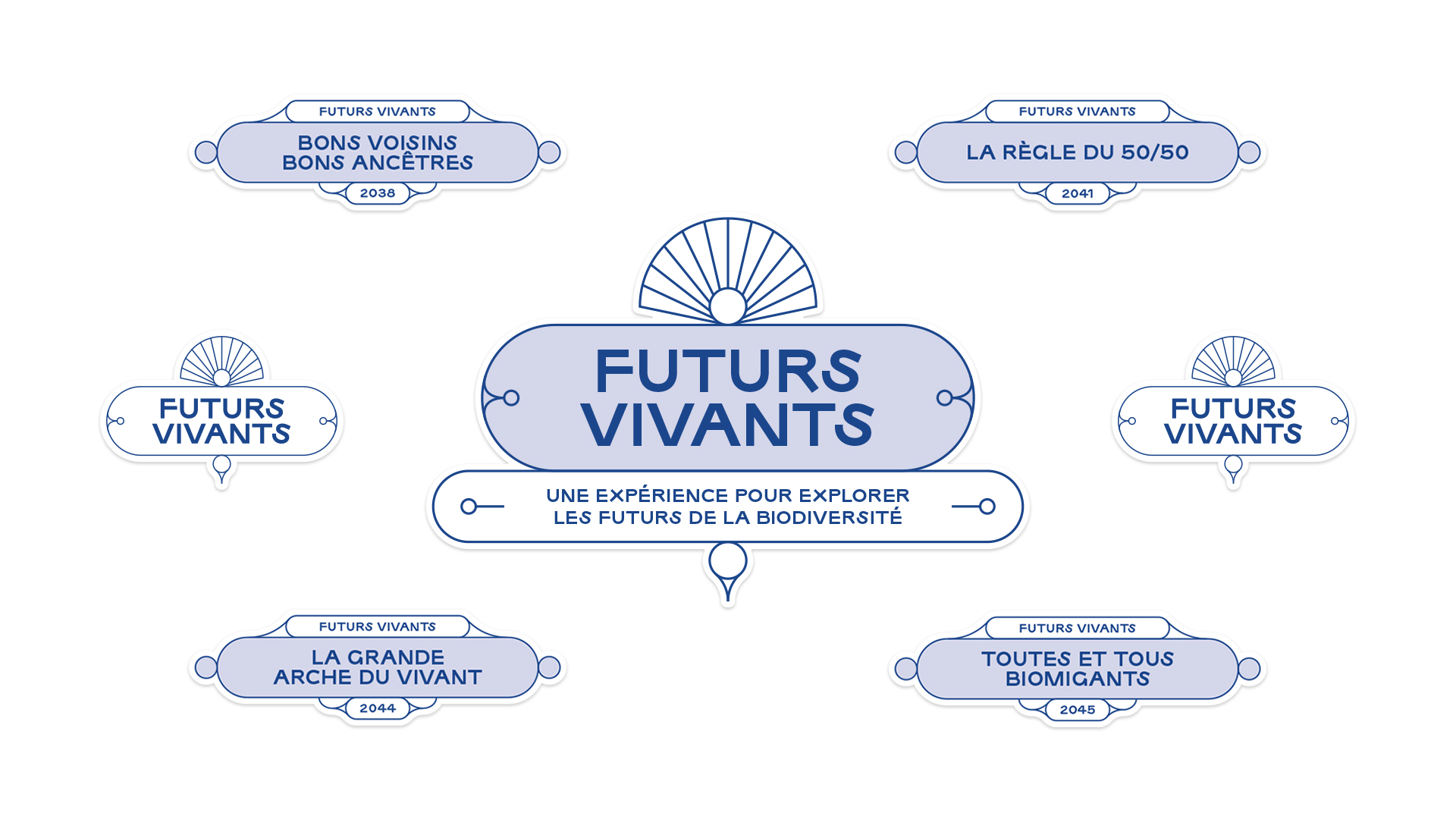 Réalisé à la demande de la Ville de Paris, Futurs Vivants est un outil polyvalent, didactique et ludique pour émettre des scénarios abordant les futurs possibles de la biodiversité, offrant en ateliers une expérience collective de sensibilisation et de discussion.