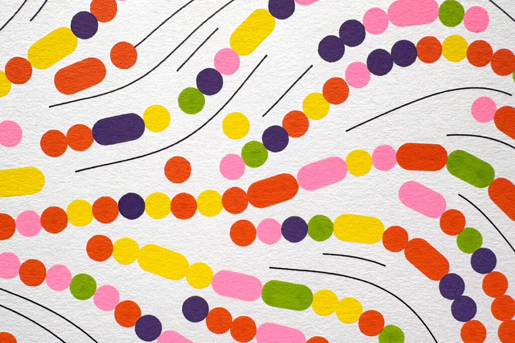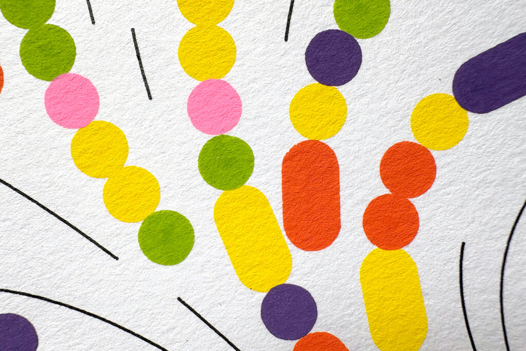 An alternate version of Macroscope, with shorter round shapes and eventual connecting black threads.
