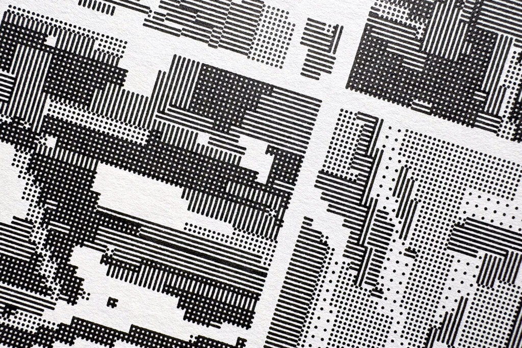 A violent unmaking of a rectangle, made of only parallel lines and dots.